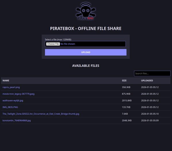 "A PirateBox is a portable electronic device that creates a local, offline wireless network enabling anonymous file sharing and communication among users in close proximity."